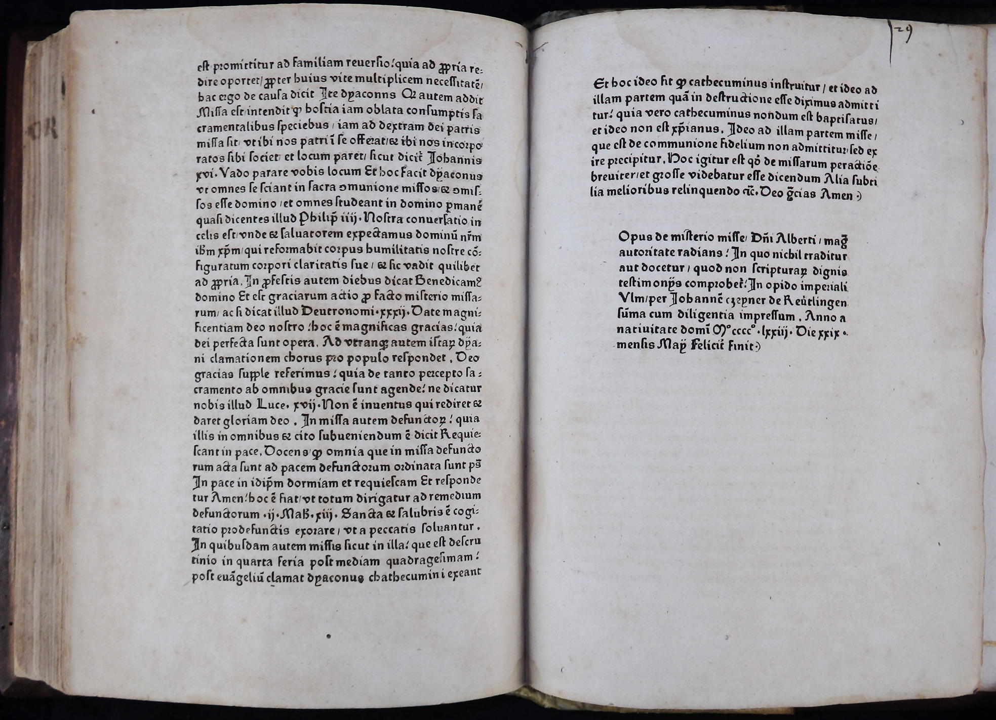 „At the foot of the last page is a block of three lines, impressed in blind, consisting of three M’s and 39 R’s“