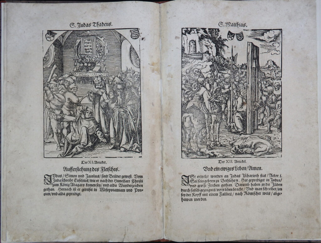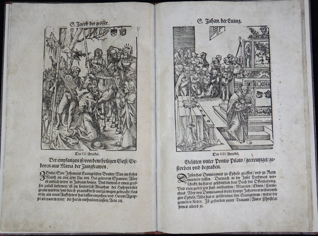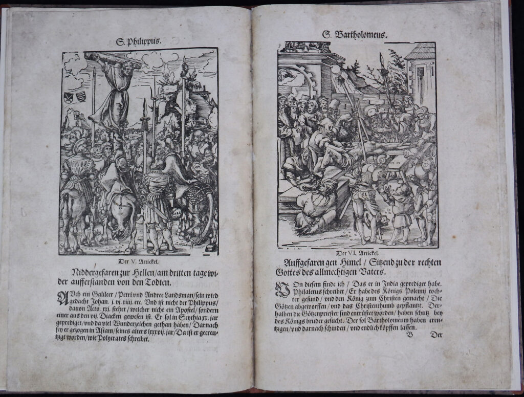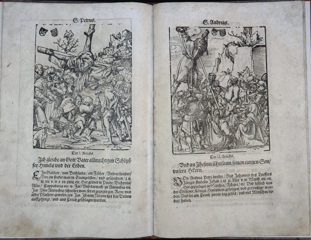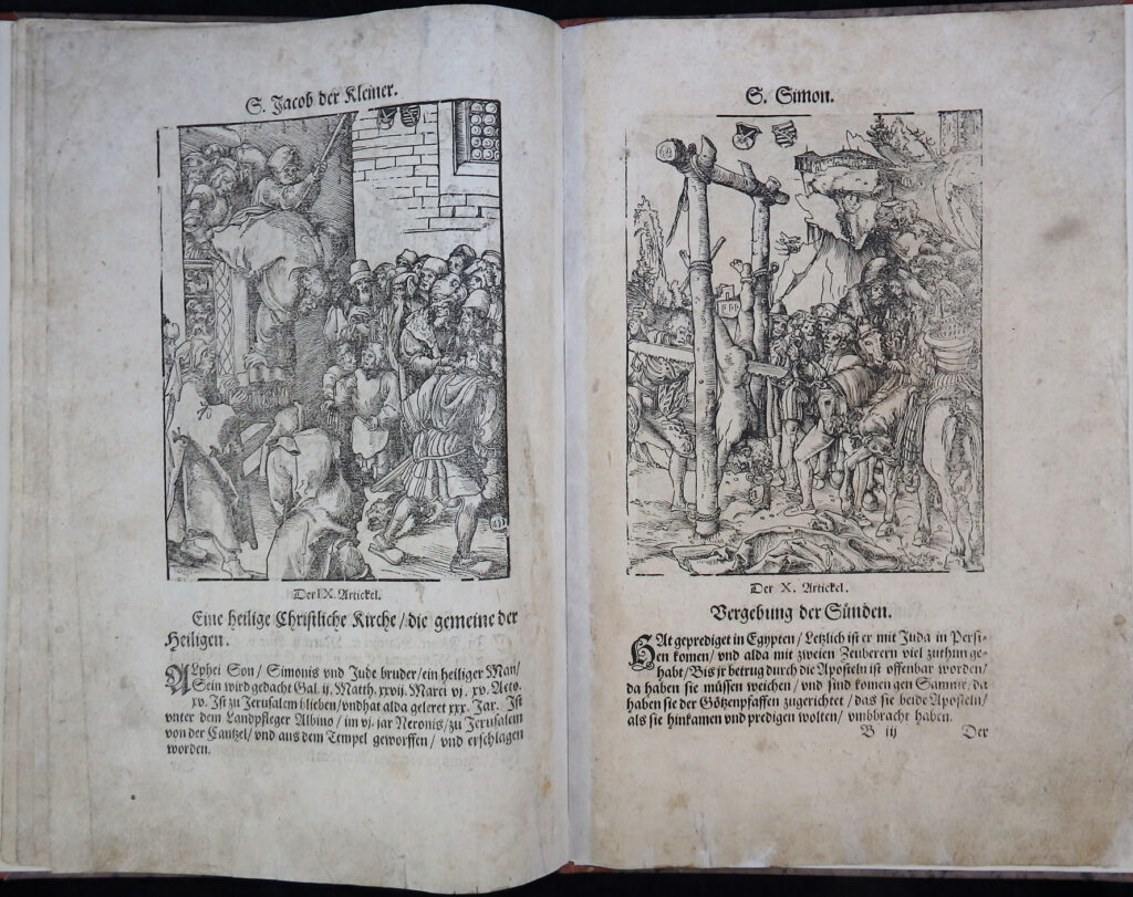 Illustriert mit 14 ganzseitigen Holzschnitten von Lucas Cranach, acht davon mit den Martern der Apostel aus dem Jahr 1512.