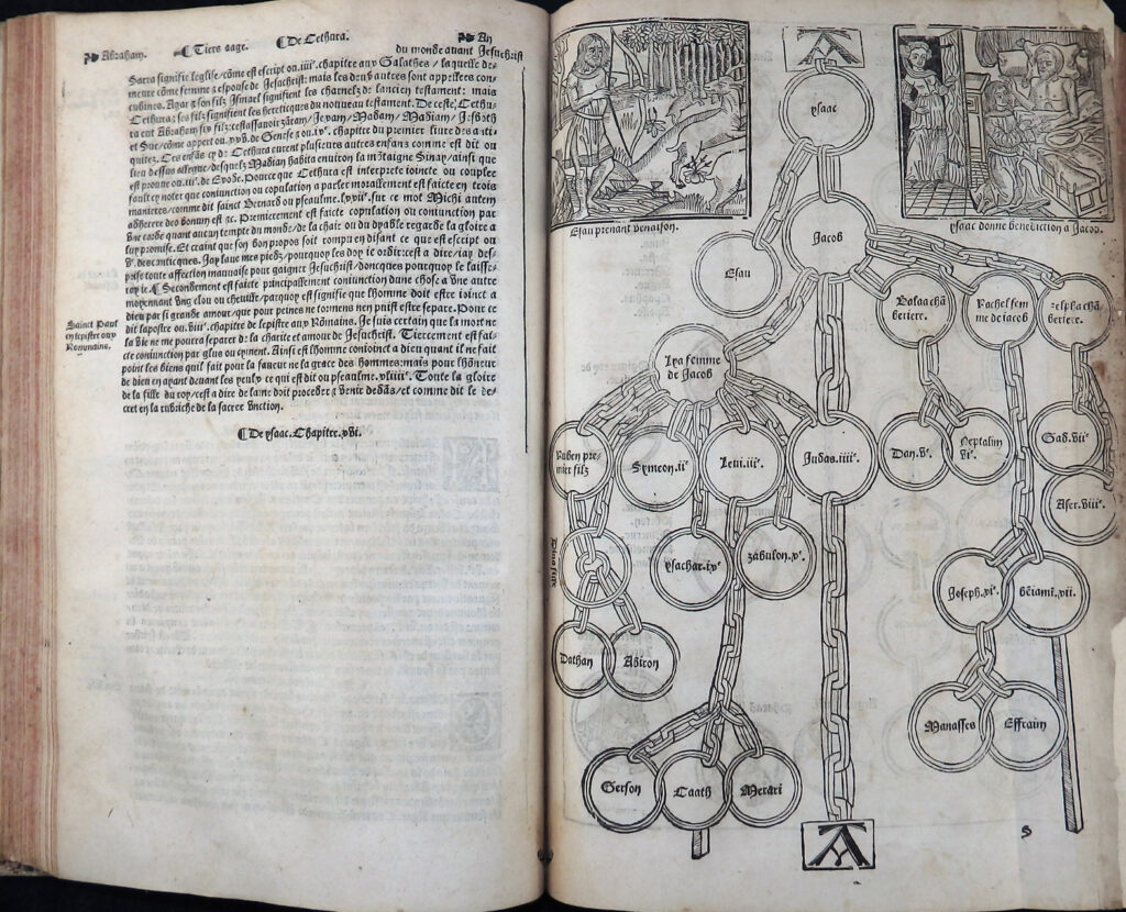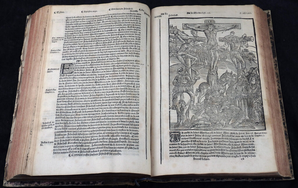 Das Werk enthält mehr als 120 Holzschnitte, darunter einige ganzseitige. Dabei handelt es sich in erster Linie um Szenen aus der Bibel, darunter die Kreuzigung Jesu, die Erschaffung der Erde und Adam und Eva, die von der Schlange verführt werden aber auch diverse Stammbäume.