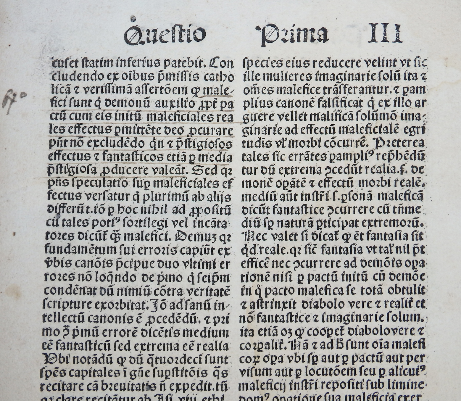 In den Vorstücken die Verteidigung des Werkes durch den Autor (Apologia auctoris), der das Hexenunwesen betreffenden Bulle von Papst Innozenz VIII. „Summis desiderantes affectibus“ (Rom, 5. Dezember 1484) sowie der Approbation durch Professoren der Kölner theologischen Fakultät vom 19. Mai 1487.