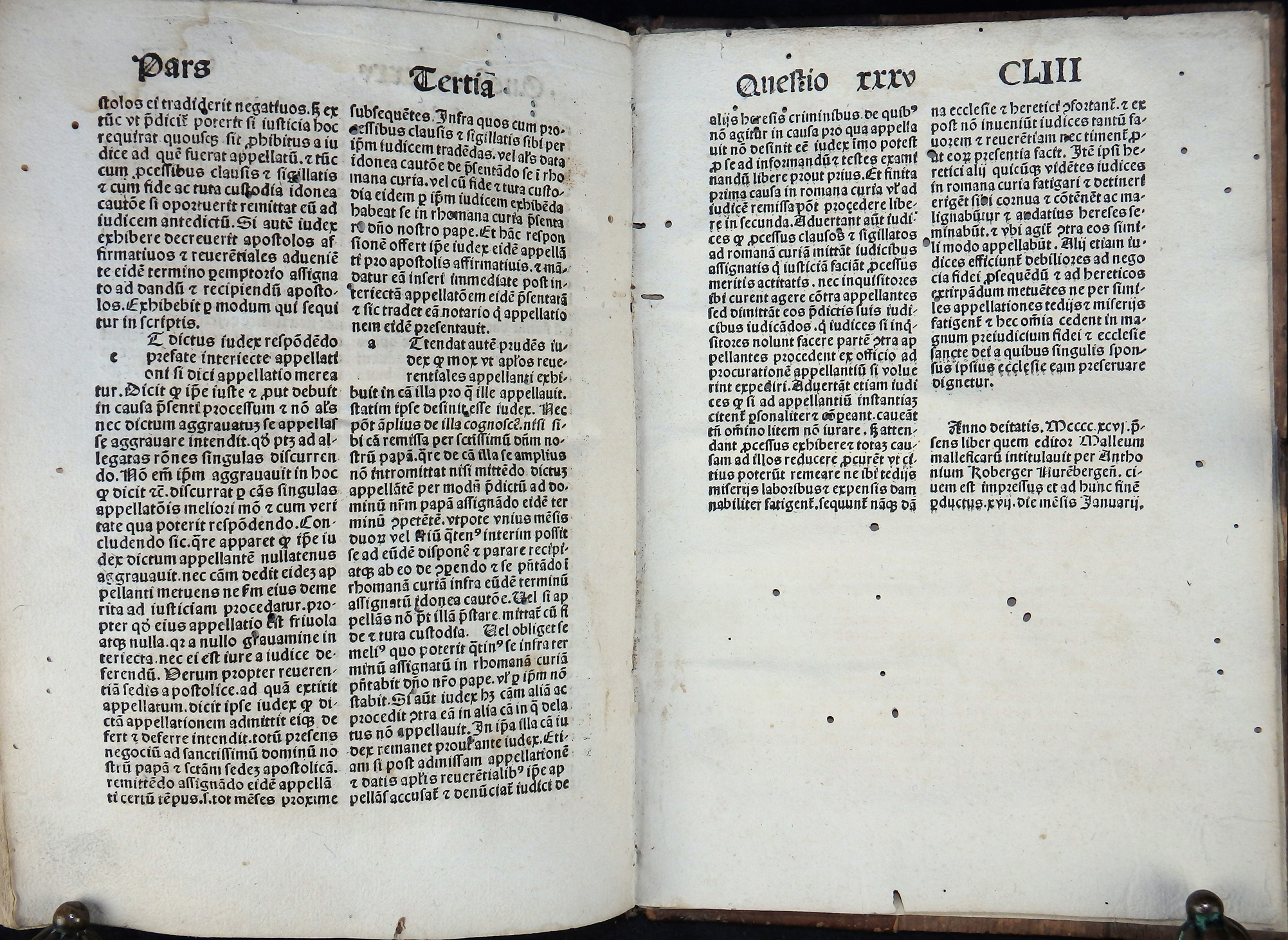 Äußerst seltenes Exemplar einer Inkunabelausgabe des berühmt-berüchtigten „Malleus Maleficarum“, des sogenannten „Hexenhammers“, gedruckt in der berühmten Nürnberger Offizin von Anton Koberger.